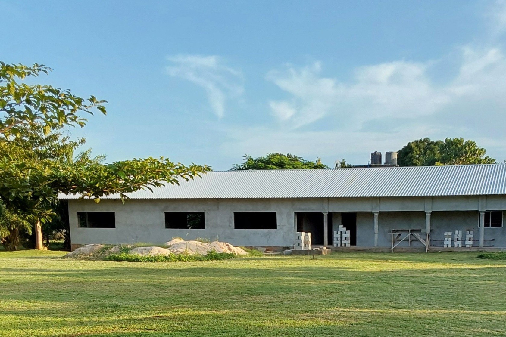 Momenteel worden twee leslokalen gebouwd voor de verpleegopleiding. De muren zijn gebouwd en het dak is aangebracht. Anja en Jon gaan over een paar weken met verlof en wanneer zij terug komen, is er nog het afrondende werk zoals de electriciteit, het plamuren van de binnen- en buitenmuren, plaatsen van ramen/deuren, aanbrengen van het plafond en tot slot alles een kleurtje geven.